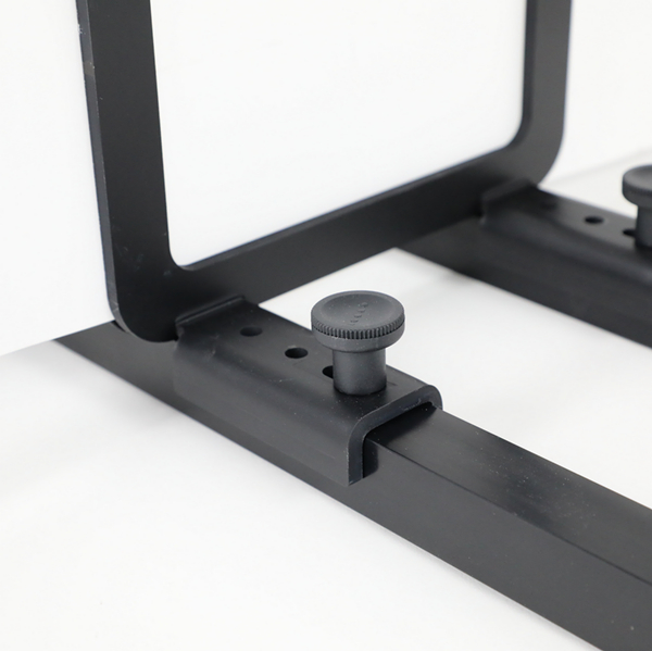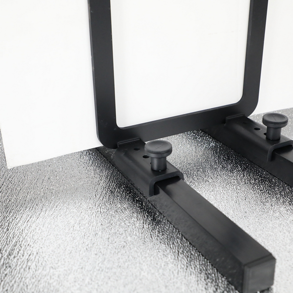 Descriptif & conseils support de sol pour plaques de polystyrene design original developpé par notre entreprise il permet de mettre en place tous les panneaux d'une épaisseur allant de 1 mm à 50mm. Adapté aux foamcore (vflats) ainsi qu'aux plaques de polystyrene il vous permettra de d'occulter ou de reflechir la lumiere d'une maniere economique et flexible. Realisé en aluminium soudé puis anodisé noir. ils s'emboitent les uns dans les autres pour diminuer le volume de stockage. Prevoir deux supports de sol pour une plaque de 1m x 2m.